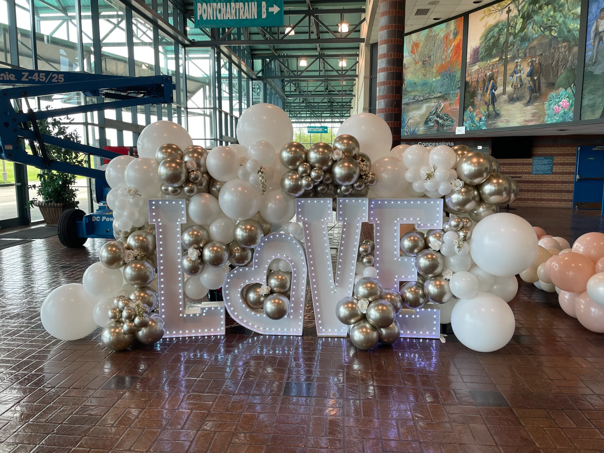 Love marquee and balloons decor